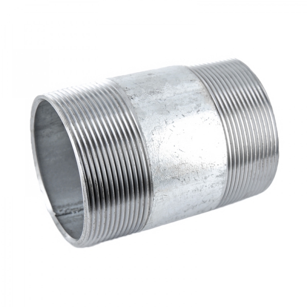 Rohrdoppelnippel aus verzinktem Stahl mit kegeligem R-Gewinde. Die ideale Lösung zum Verbinden von Rohren und Rohrteilen.