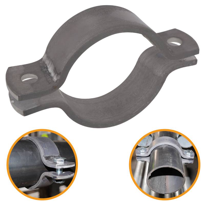 Die Rohrschelle besteht aus zwei Teilen, die einfach um das Rohr montiert werden können. Das macht die Anpassung an verschiedene Rohrdurchmesser unkompliziert.